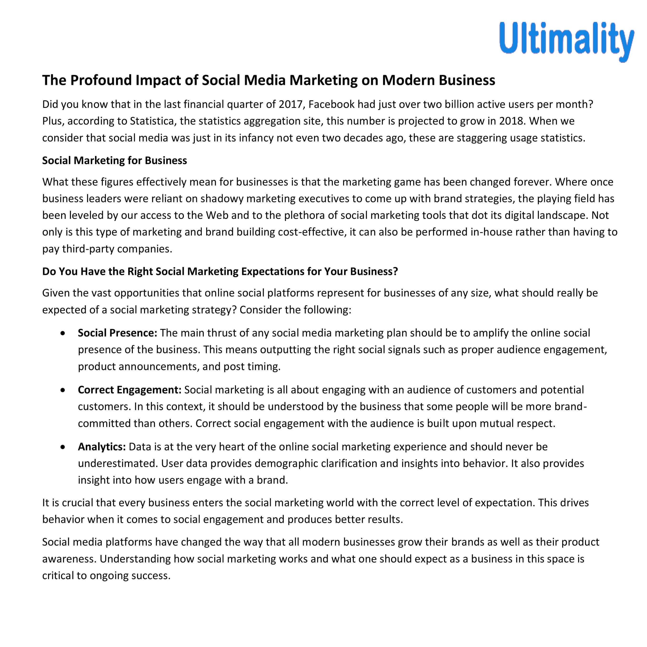 Ultimality prides itself on our ability to satisfy all your content writing needs. Give us any subject matter and let our writers create effective, practical content that will leave a lasting impression on your customers. At Ultimality, we don’t just write articles – we create them.